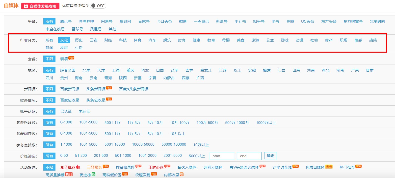 商品内容:新闻媒体/自媒体【垂直】类目下的推荐位,指新闻媒体按照频道分类,或者自媒体按照行业分类下的媒体排名,可选择兑换不同频道/行业分类下,第1页第12位的媒体推荐位,将自己的媒体放于推荐位。